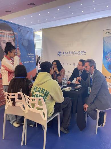 此次展会吸引了来自全球的多所高校及教育机构参展。作为中国职业教育“出海”的标杆院校,参展教师详细介绍了“中文+职业技能”的办学模式,以及摩洛哥义乌丝路学院“2+1”双学历人才培养项目,吸引众多摩洛哥学生、家长及教育机构关注。