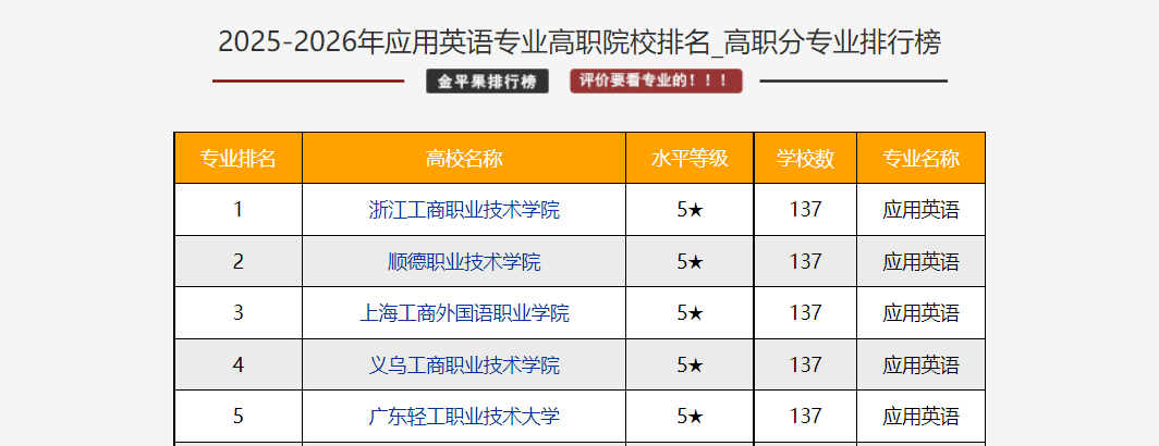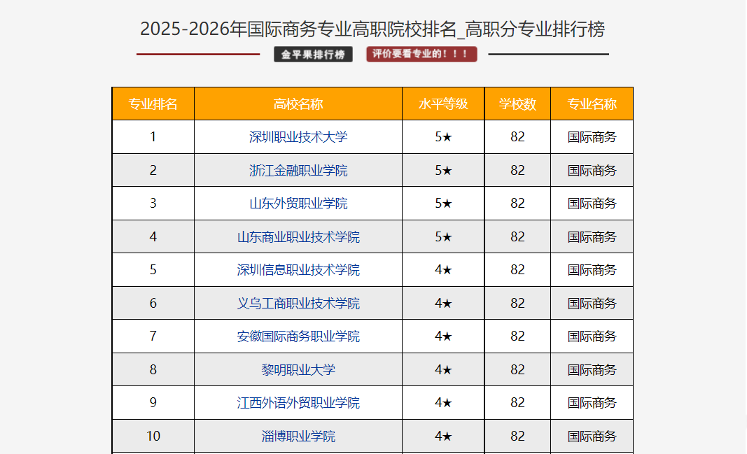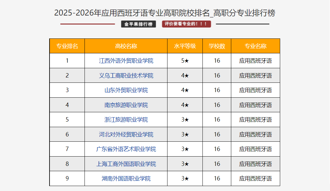 2025年3月,金平果发布中国高职院校专业竞争力排行榜。外语外贸学院国际经济与贸易、应用西班牙语专业斩获全国第2名,应用英语专业位列全国第4,国际商务专业挺进全国前6,四大专业集体跻身全国第一方阵。
