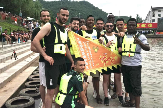 5月31日,义乌市第七届大陈龙舟赛在浙江省义乌市大陈镇的红旗村段水域举行。我校由阿尔及利亚、巴勒斯坦、也门、摩洛哥等国家的20位国际学生组成的“感知中国”龙舟队伍受邀参加比赛。