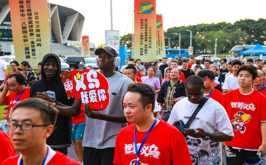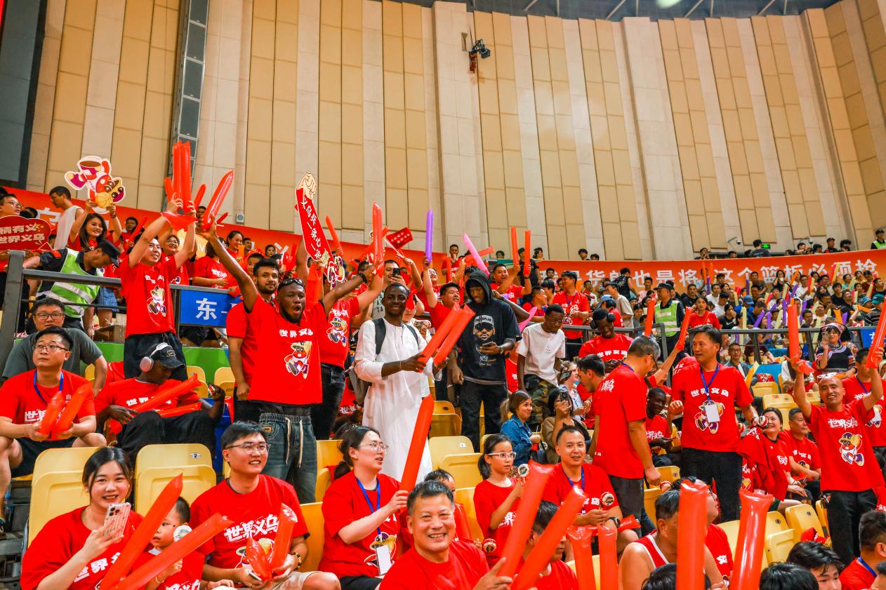 7月 13日晚,2025年浙江省城市篮球联赛(浙 BA)金华赛区预选赛在金华市体育中心体育馆激情开打。我校来自俄罗斯、秘鲁、埃及、叙利亚、贝宁、乌干达等国家的20余名国际学生和毕业校友组成的助威团身着统一服饰,为自己的第二故乡—— 义乌呐喊助威。现场气氛热烈,国际学生们全程投入,用中文高呼“世界义乌必胜!”,最终见证义乌队以69:46的比分强势获胜,将赛事首日的热血氛围推向高潮。