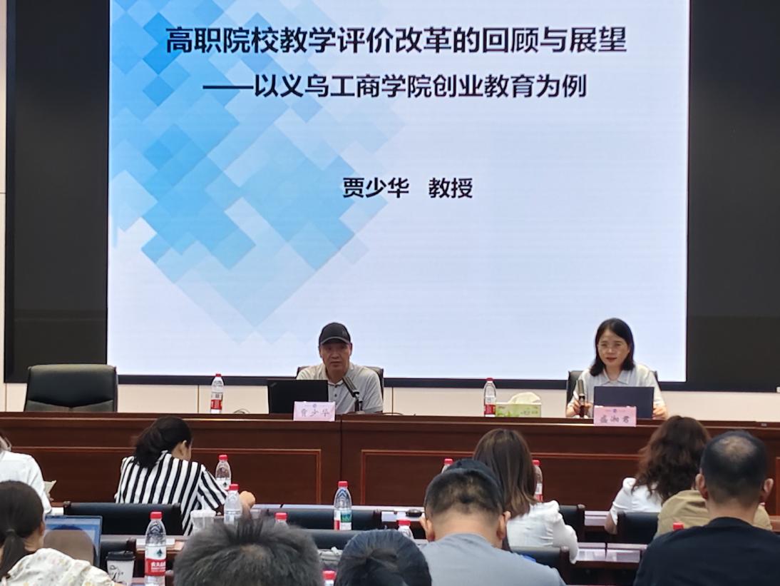 学校邀请义乌工商职业技术学院原副院长贾少华教授做以《高职院校教学评价改革的回顾与展望》为主题的讲座。贾少华教授结合学校以“创”立校的特色办学之路和学生创业成功的典型案例,介绍了学校创业教育的教学评价改革历程,并提出要基于生源类型多样、产业人才需求的多样化等特点,处理好单一供给与多元需求之间的矛盾,为学生提供适合的教育;要打破高校内部的组织壁垒、政策壁垒、专业壁垒和课程专业壁垒,以组织模式改革催生人才培养模式的深层次变革;要强化产教融合、实践导向,围绕“胜任即毕业”的目标,深化任务式、项目式、探究式等培养模式改革,推动学校人才培养与产业变化紧密互动。