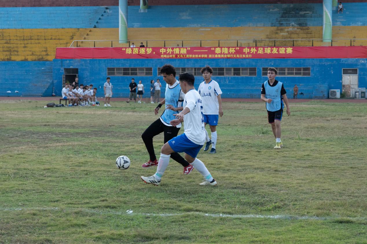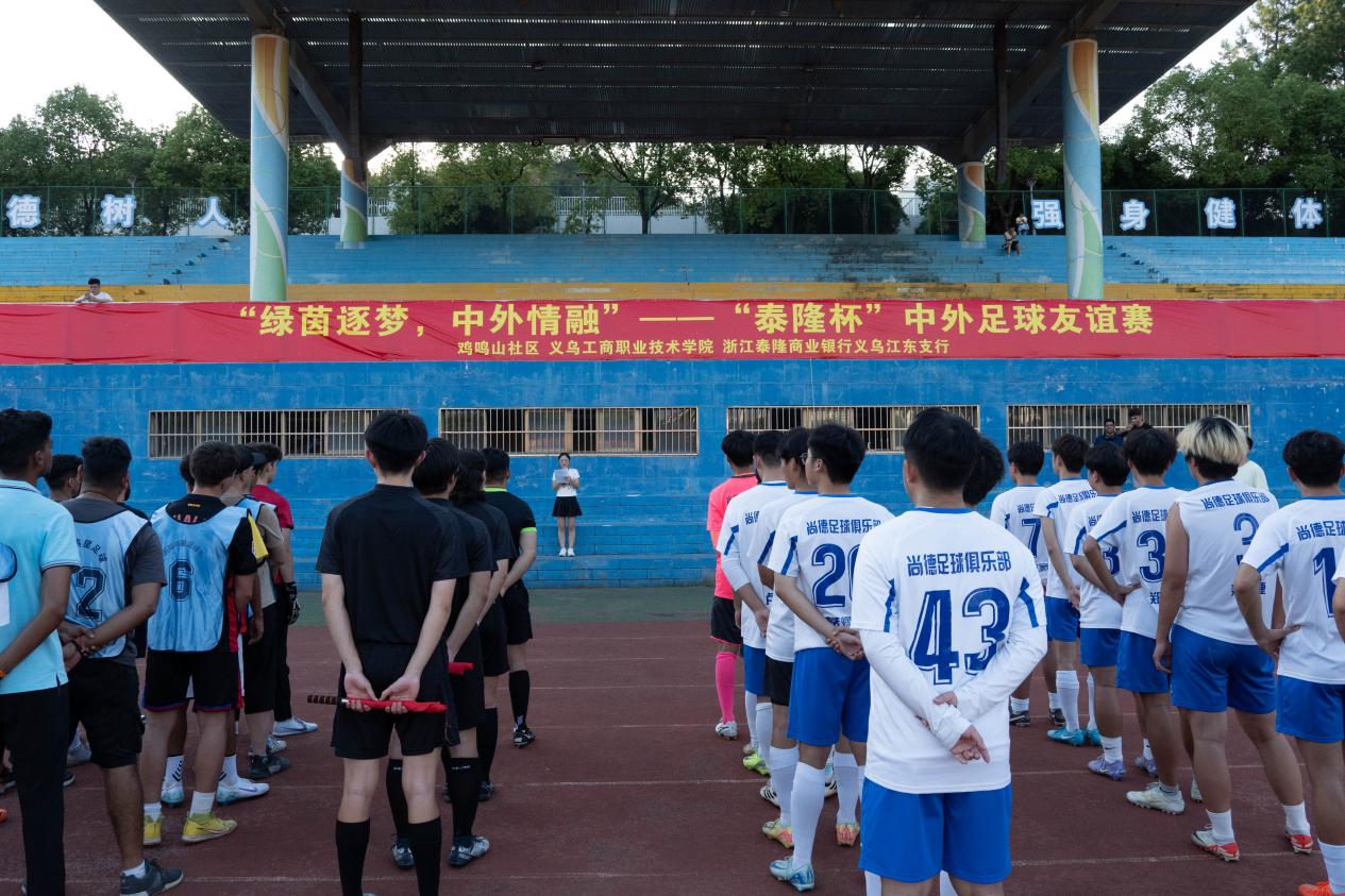 10月12日下午,“绿茵逐梦,中外情融”——“泰隆杯”中外足球友谊赛在义乌工商职业技术学院依山足球场开赛。本次赛事由鸡鸣山社区与义乌工商职业技术学院马克思主义学院联合主办,浙江泰隆商业银行义乌江东支行协办,吸引了鸡鸣山社区外籍居民代表队与义乌工商职业技术学院尚德足球俱乐部男子足球队共30余名球员同场竞技。