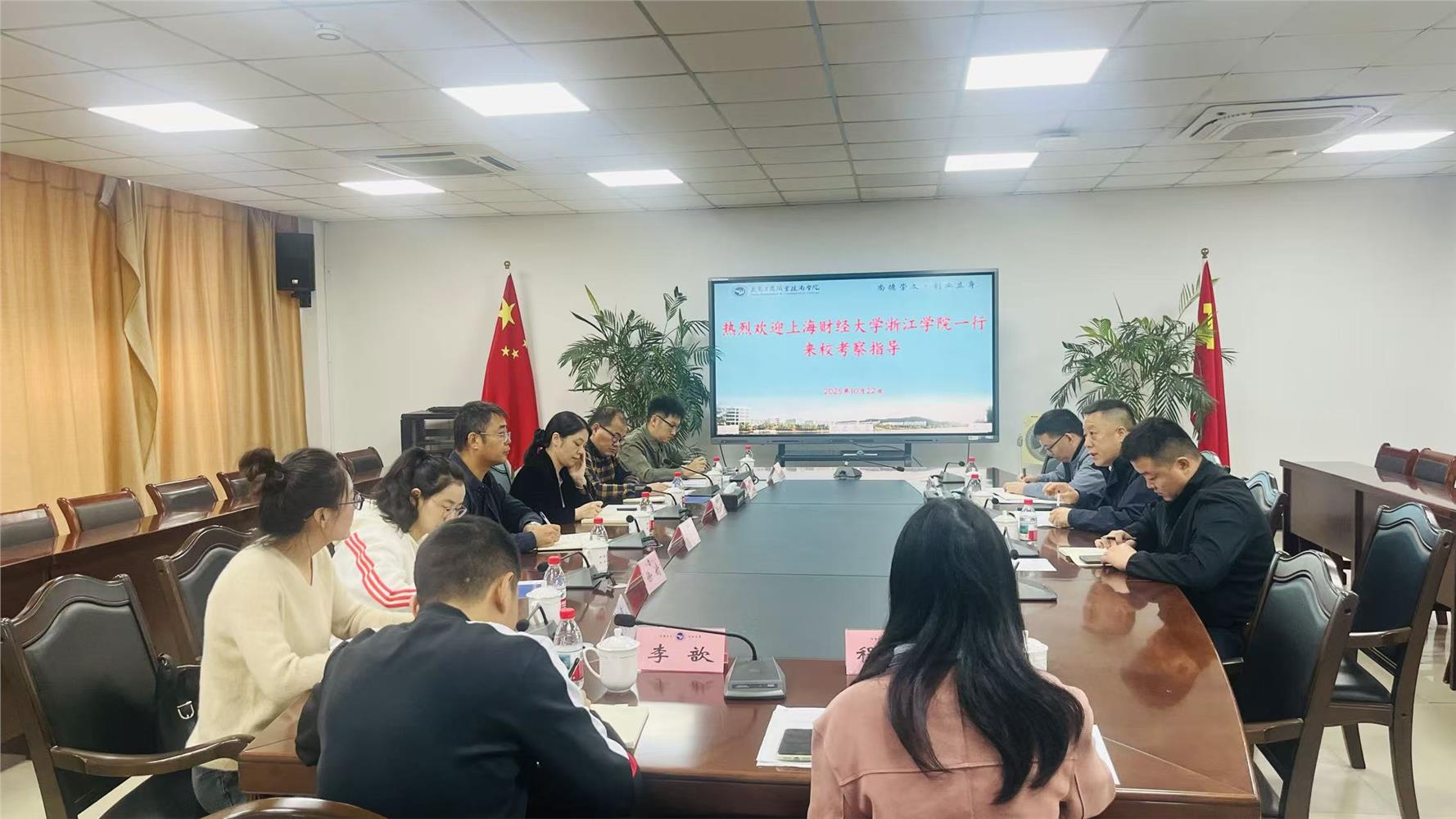 10 月 22 日,上海财经大学浙江学院党委委员徐玉芳一行八人莅临我校,开展考察交流活动。校党委委员、副院长樊曜出席座谈会并致辞,学校安保部、后勤处负责人陪同接待。
