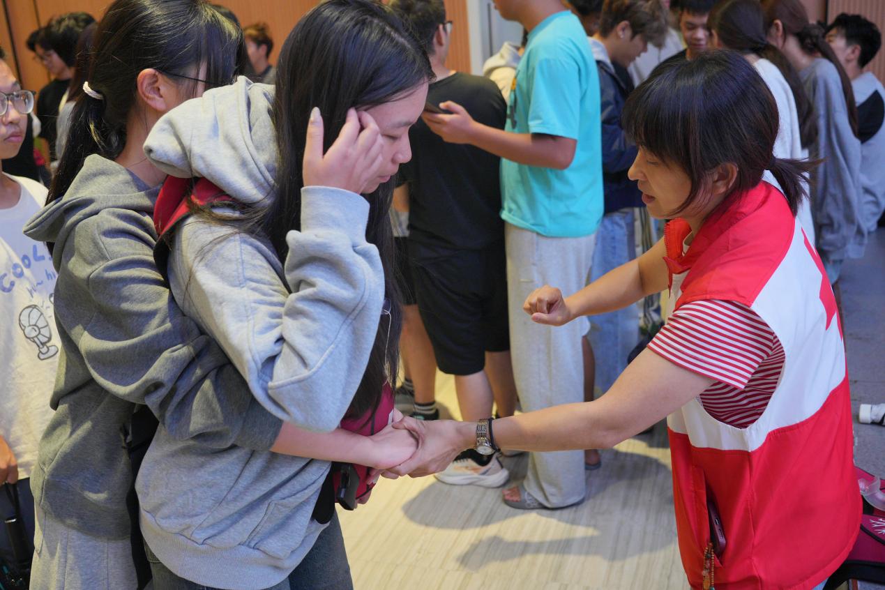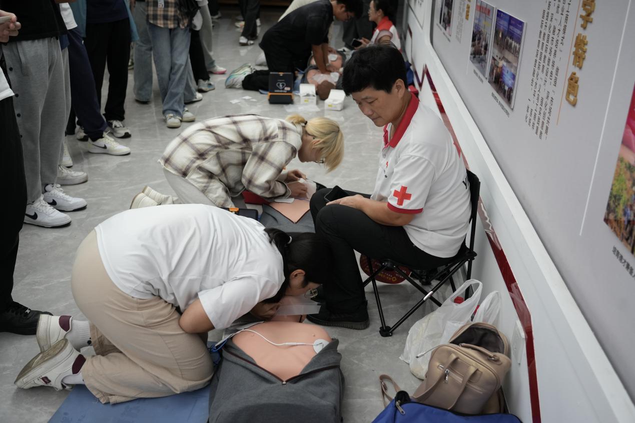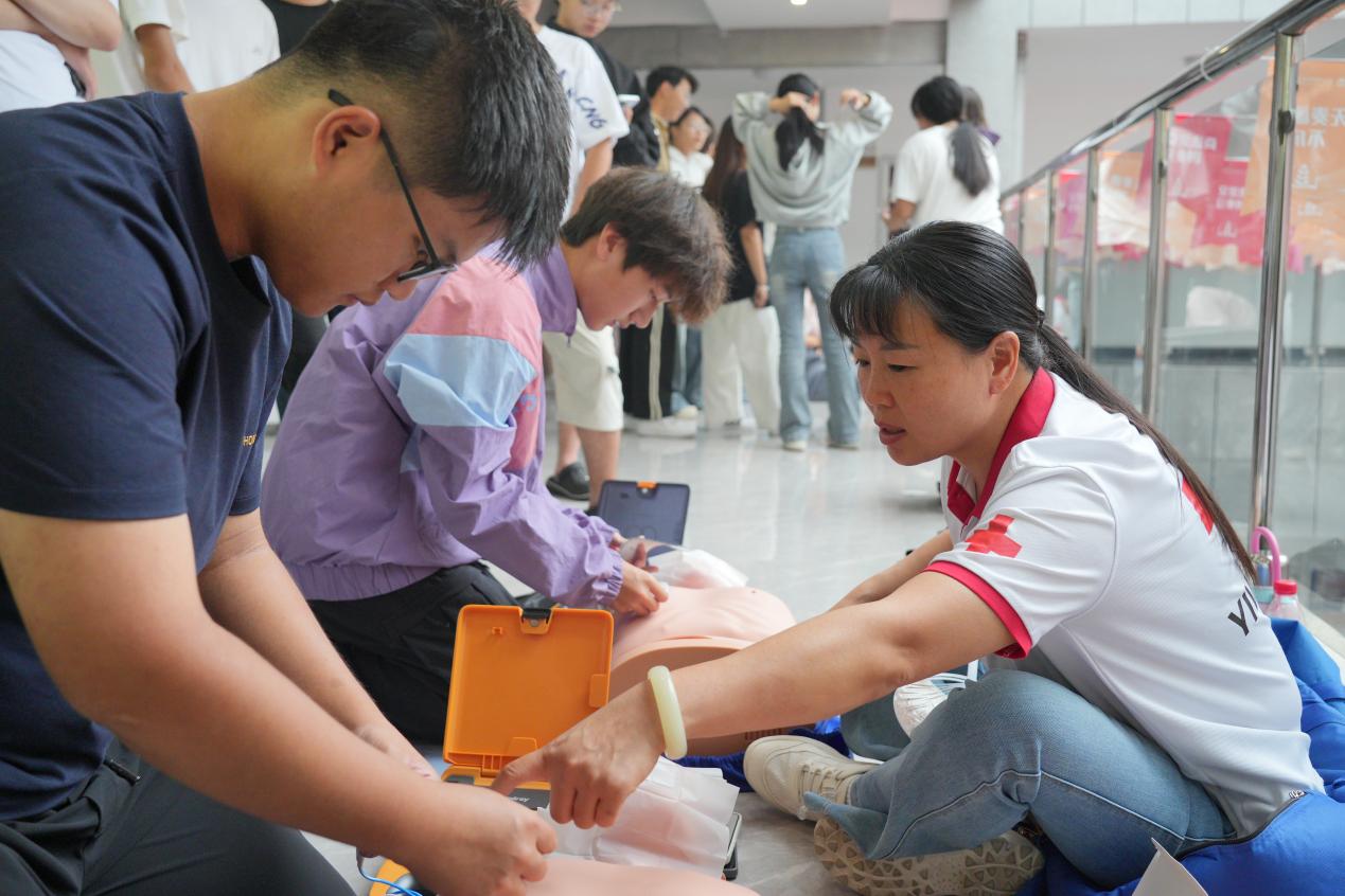 系统推进,全面培训。形成以“教-学-考-证”一体化的培训模式,包括心肺复苏(CPR)、AED使用、创伤救护(止血、包扎、固定)及海姆立克急救法等实用技能,分为理论教学、线上考核和实操演练三个环节。通过与红十字会的深入合作,优化课程设置、规范培训教学,每年急救技能培训覆盖全体新生,至今已有1.3万余名学生获得相关证书。