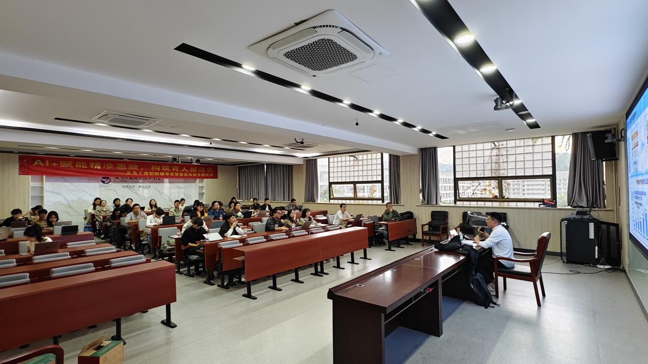 活动分为两个阶段进行,第一阶段邀请了教育部智慧思政工作室核心成员、浙江省“AI+”辅导员名师工作室主持人李甫老师为大家开展题为《AI赋能:辅导员AI智能体搭建》专题培训。李老师从人工智能在高校思政工作中的背景与现状出发,系统介绍了AI基础知识及典型应用,并通过实战教学,引导辅导员从零开始搭建专属AI智能体。培训内容贴近工作实际、案例生动,为辅导员创新育人方法提供了新思路。