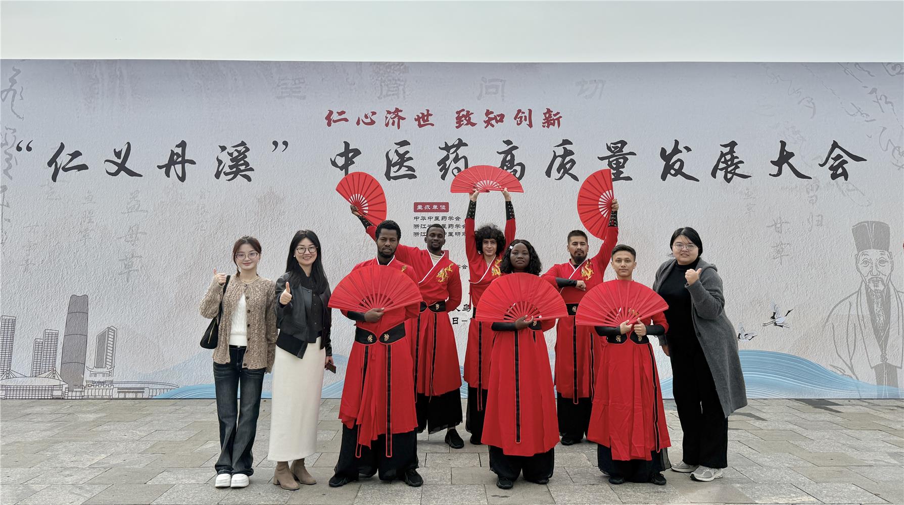 11月2日,2025年“仁义丹溪”中医药高质量发展大会在义乌市幸福湖国际会议中心举办。我校来自马里、乌干达、尼泊尔、玻利维亚、伊朗的国际学生代表参加了开幕式活动,以文化展演为媒,向世界传递中医药文化魅力。