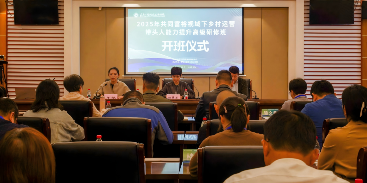11月2日下午,由金华市继续教育协会主办、义乌工商职业技术学院经济管理学院承办的“2025年共同富裕视域下乡村运营带头人能力提升高级研修班”圆满结束。本次高级研修班作为市级资助项目,吸引了来自全市各地的近50名乡(镇)村基层干部、乡村共富带头人、社区工作者,共同富裕研究学者、涉农企业主管参加。