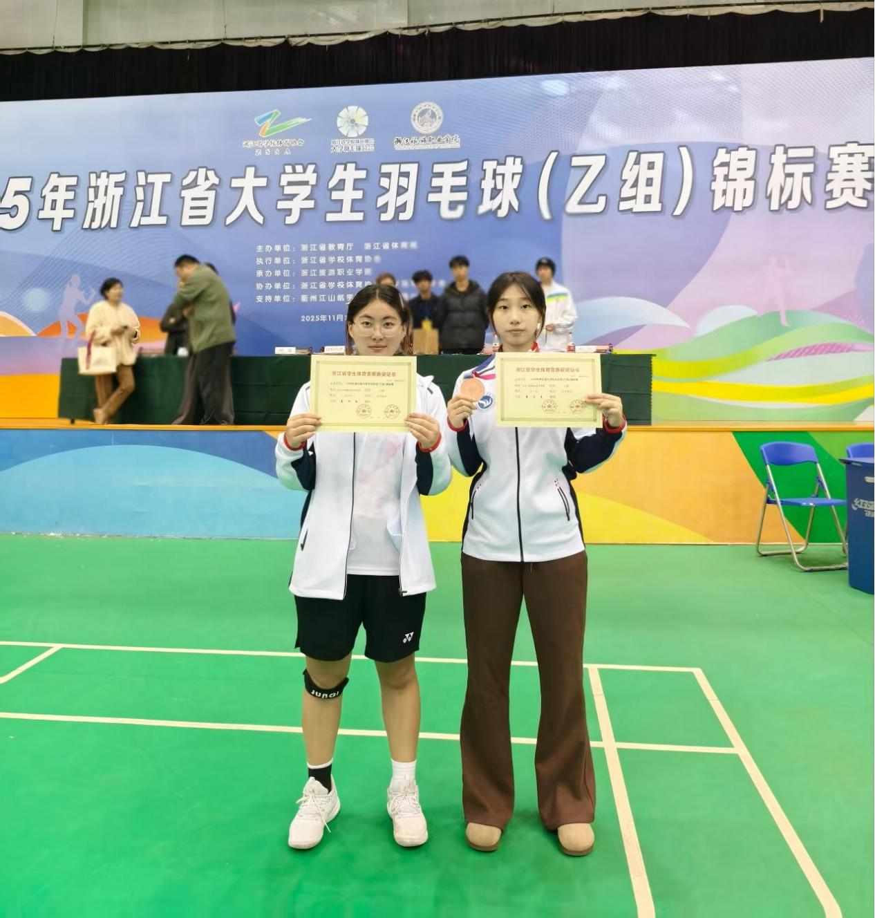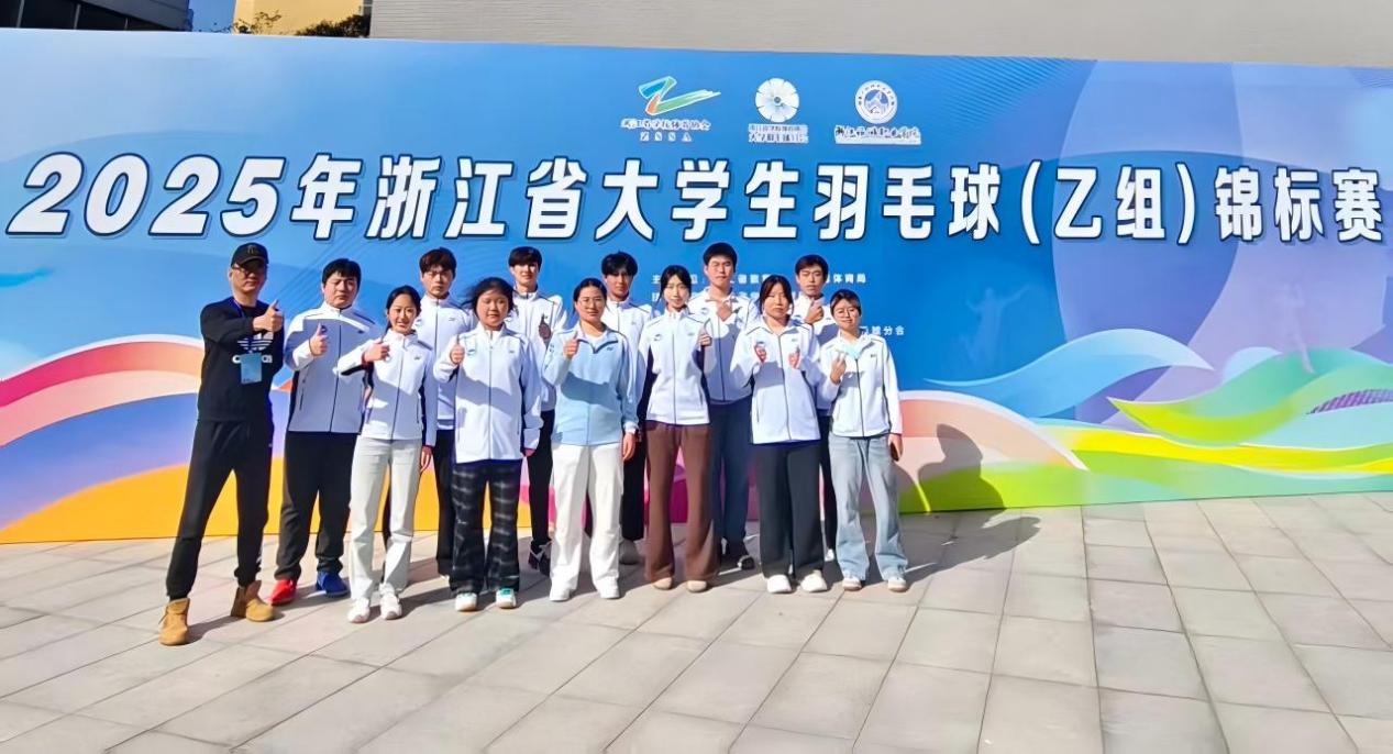 2025年11月25日至28日,由浙江省教育厅、浙江省体育局主办的2025年浙江省大学生羽毛球锦标赛在浙江旅游职业学院举行。我校由陈俊和雷建雄两位老师带队参加此次比赛,在4天的比赛中,我校运动员获得女子单打第三名和女子单打第四名的佳绩。