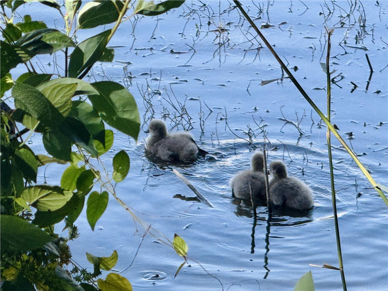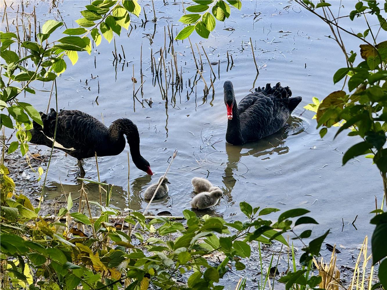 如今,三只毛茸茸的幼崽紧随父母身后,在碧波中学习游水觅食,成为校园中备受喜爱的“明星家庭”。许多师生表示,天鹅家族的壮大为校园增添了自然野趣与温馨氛围,也让师生真切感受到了后勤服务的专业温度与生态育人的美好意境。