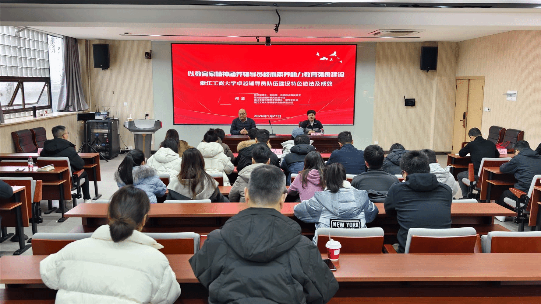 本次活动共分为两个阶段。第一阶段活动在望道楼419进行,特邀浙江工商大学学生工作部部长何波,带来“以教育家精神涵养辅导员核心素养助力教育强国建设”专题指导。他重点围绕辅导员队伍建设与育人实践展开深度分享,聚焦辅导员专业发展、职业规划等四大核心问题,提出辅导员队伍需从事务型向生态型转型、筑牢育人核心支柱,为我校辅导员队伍职业化、专业化建设提供了思路指引。