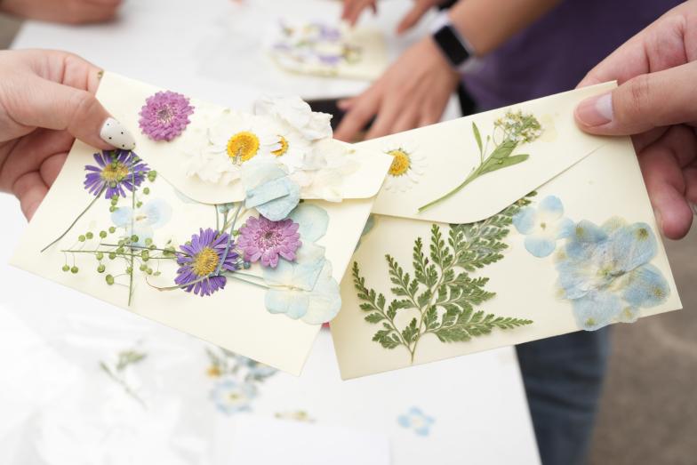 干花与信封邂逅,化作温暖的载体。同学们将干花精饰于信封之上,内藏书信与影像,让那份含蓄的情感在传统工艺中得以封存与传递。
