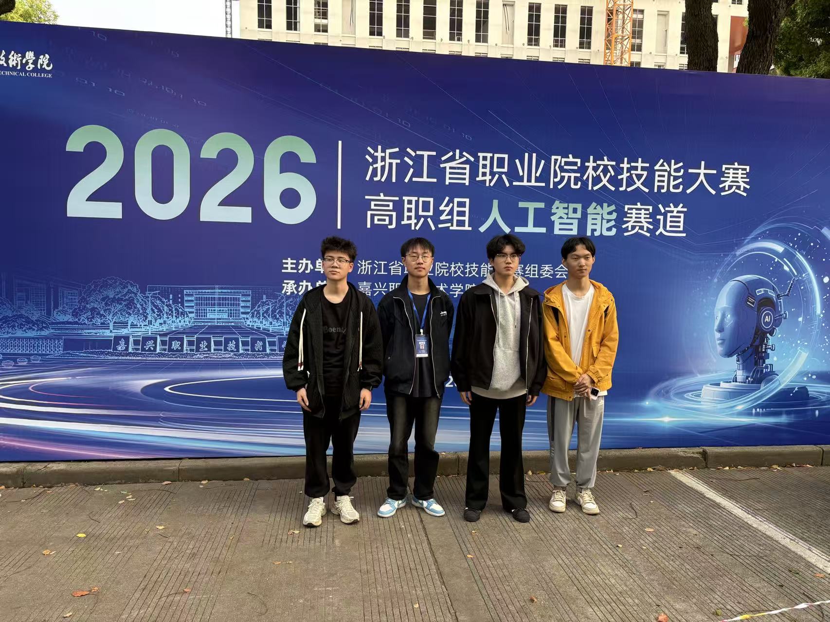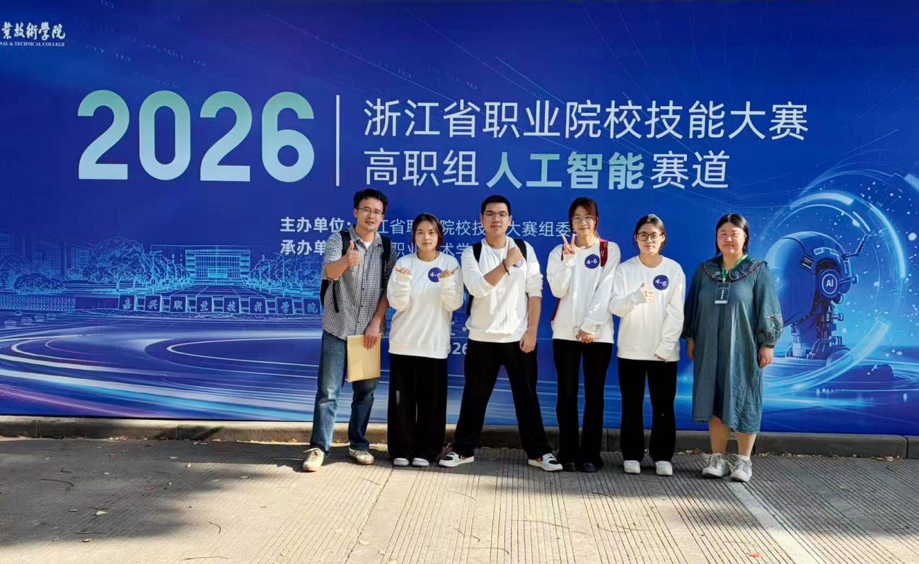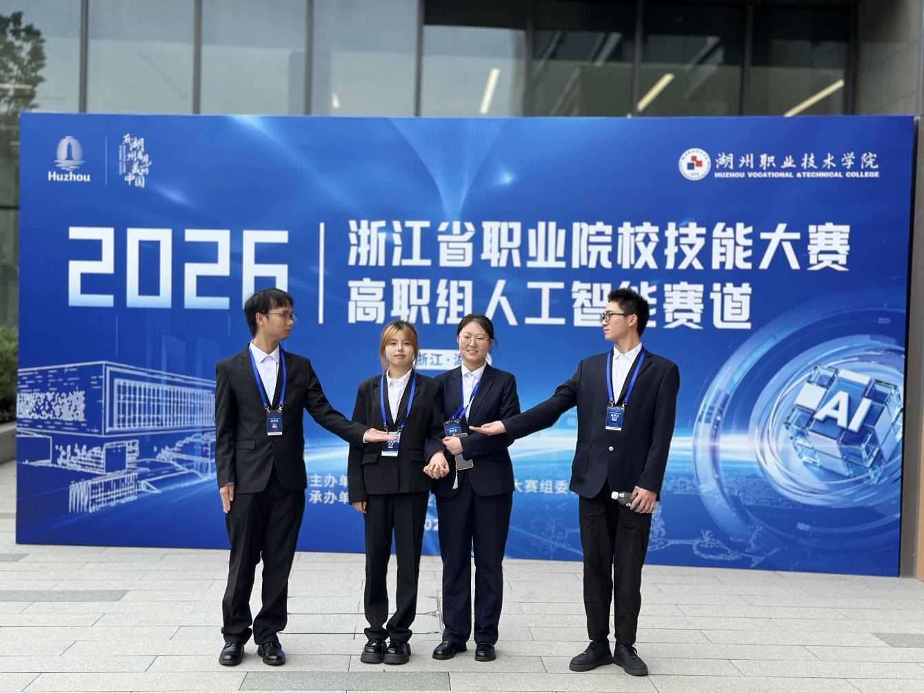 4月18日至19日,2026年浙江省职业院校技能大赛高职组人工智能赛道顺利举行,赛事分设湖州职业技术学院、温州职业技术学院、嘉兴职业技术学院三大赛场,全省共129支参赛队伍同台竞技、比拼技能。我校共选派3支队伍参赛,经过激烈角逐,斩获银奖1项、铜奖1项。