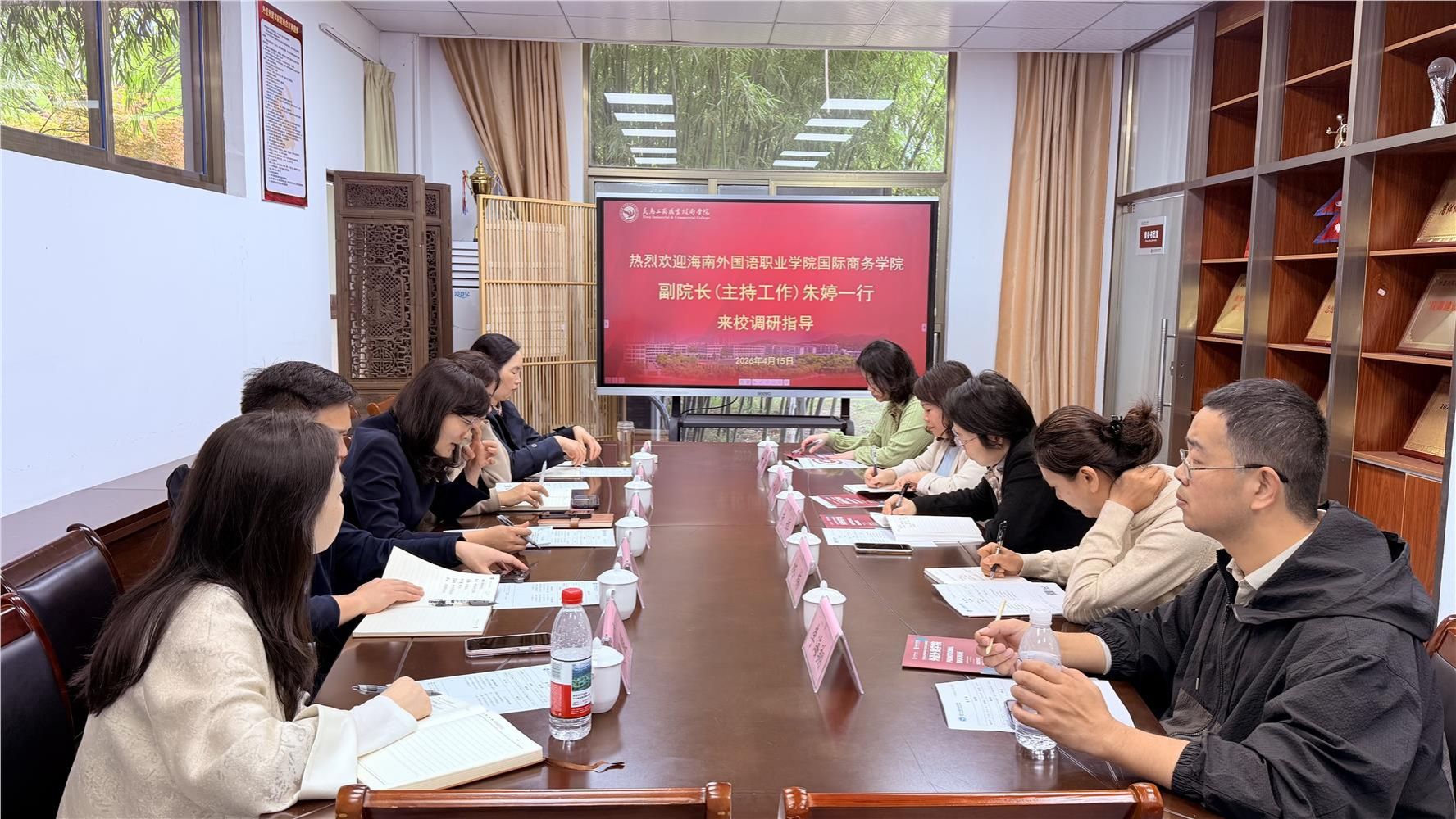 近日,海南外国语职业学院国际商务学院副院长(主持工作)朱婷一行5人来我校调研交流,外语外贸学院负责人、教学工作负责人及相关专业负责人参加交流。