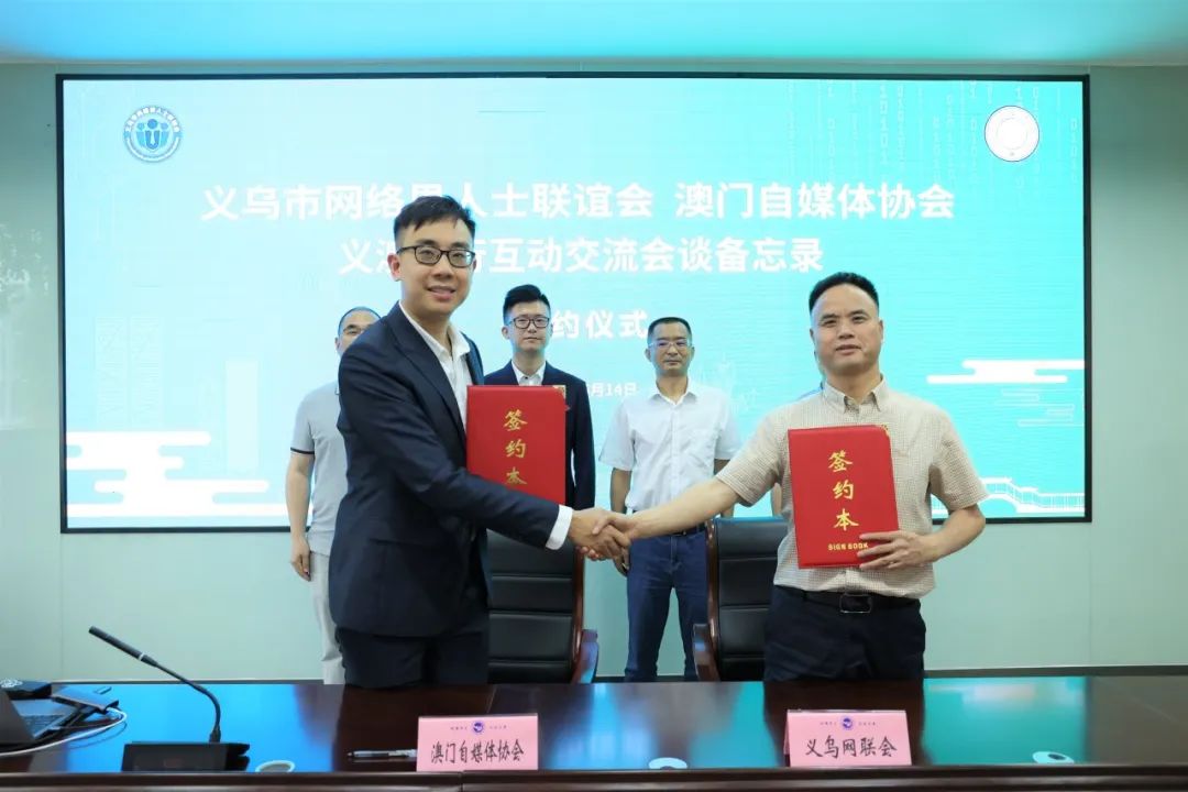 为促进义澳两地的合作交流,推动义乌与澳门两地国际贸易和自媒体领域的合作与发展,6月14日,澳门自媒体协会与义乌市网联会在义乌工商职业技术学院签订合作备忘录。