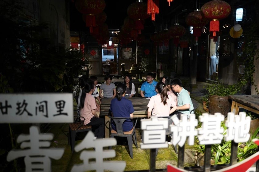 沿着村民口中的康庄大道—S210省道,实践团成员实地走访了省级民主法治村新光村,中国诗人小镇上河村,以“清境、亲乡、轻度假”为主题的朱宅、利民等村。围绕基层治理、环境整治、产业转型、乡村振兴等方面对当地村委、村民开展走访入户,并参观当地党群服务中心。此外暑期社会实践团在国家级乡村旅游创客示范基地“廿玖间里”开展理论宣讲,从一枚小小的中国结系到“浦江经验”,让村民们体会二十年来乡村发展变化,也让同学们走进基层做好实践。