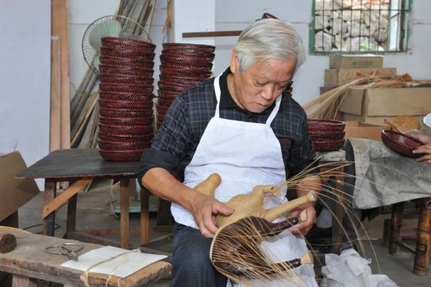 “嵊州竹编技艺已有两千年历史,有篮、盘、罐、盒、瓶、屏风等12大类产品,7000余个花色品种。一件精美的作品需要经过10余道制作工序、100多种编织技法才能完成,能在一寸长度内编进150根竹篾丝。”在嵊州文创园,工作人员向实践团成员介绍道。据了解,嵊州竹编国家级非遗代表性传承人俞樟根8岁起随父学习竹编技艺,在从艺七十多年的过程中,多次革新竹编技术,创制了《九狮舞绣球》《苏武牧羊》《还我河山》等竹编精品,赢得了“中外竹编第一家”的美誉。
