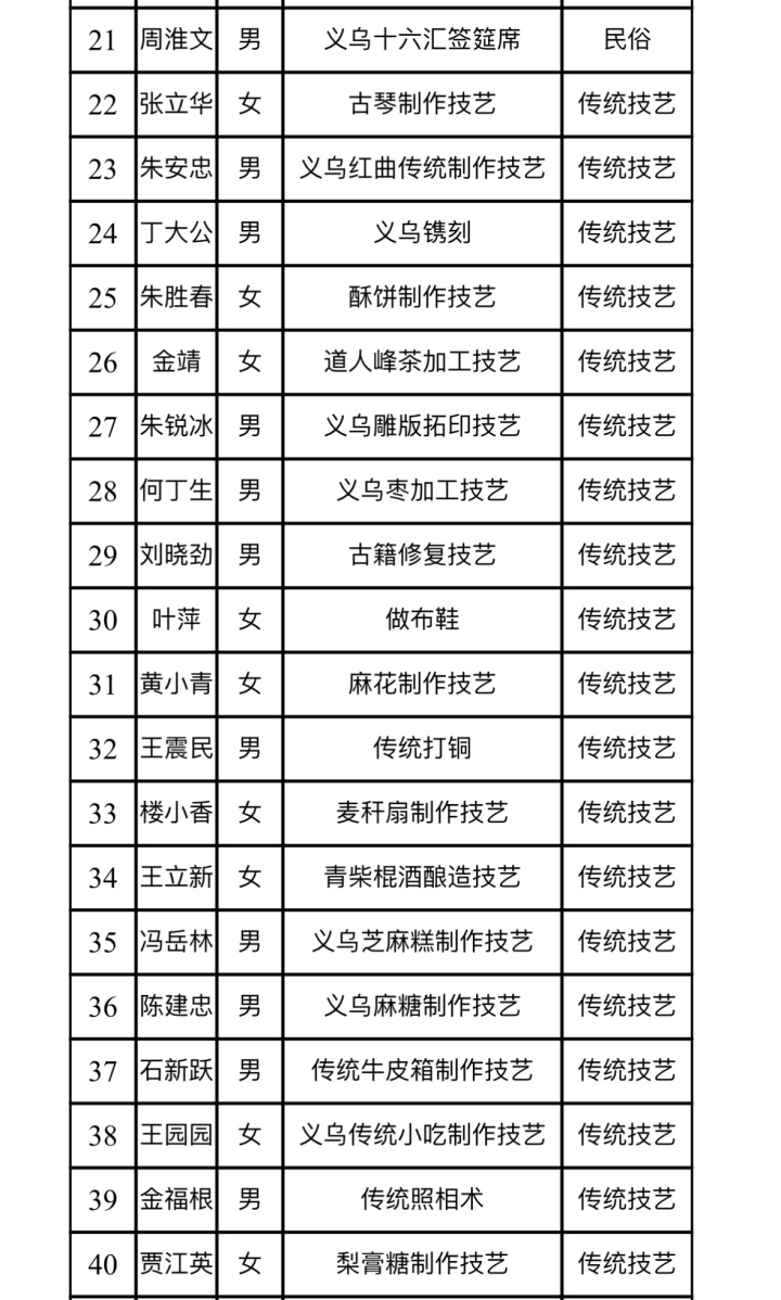 近日,根据《关于组织开展第五批义乌市级非物质文化遗产代表性传承人申报工作的通知》文件要求,义乌市文化和广电旅游体育局组织开展了第五批义乌市非遗代表性传承人申报与评审工作。经各单位推荐、专家评审、社会公示等程序,确定了48名传承人为第五批义乌市非物质文化遗产项目代表性传承人。