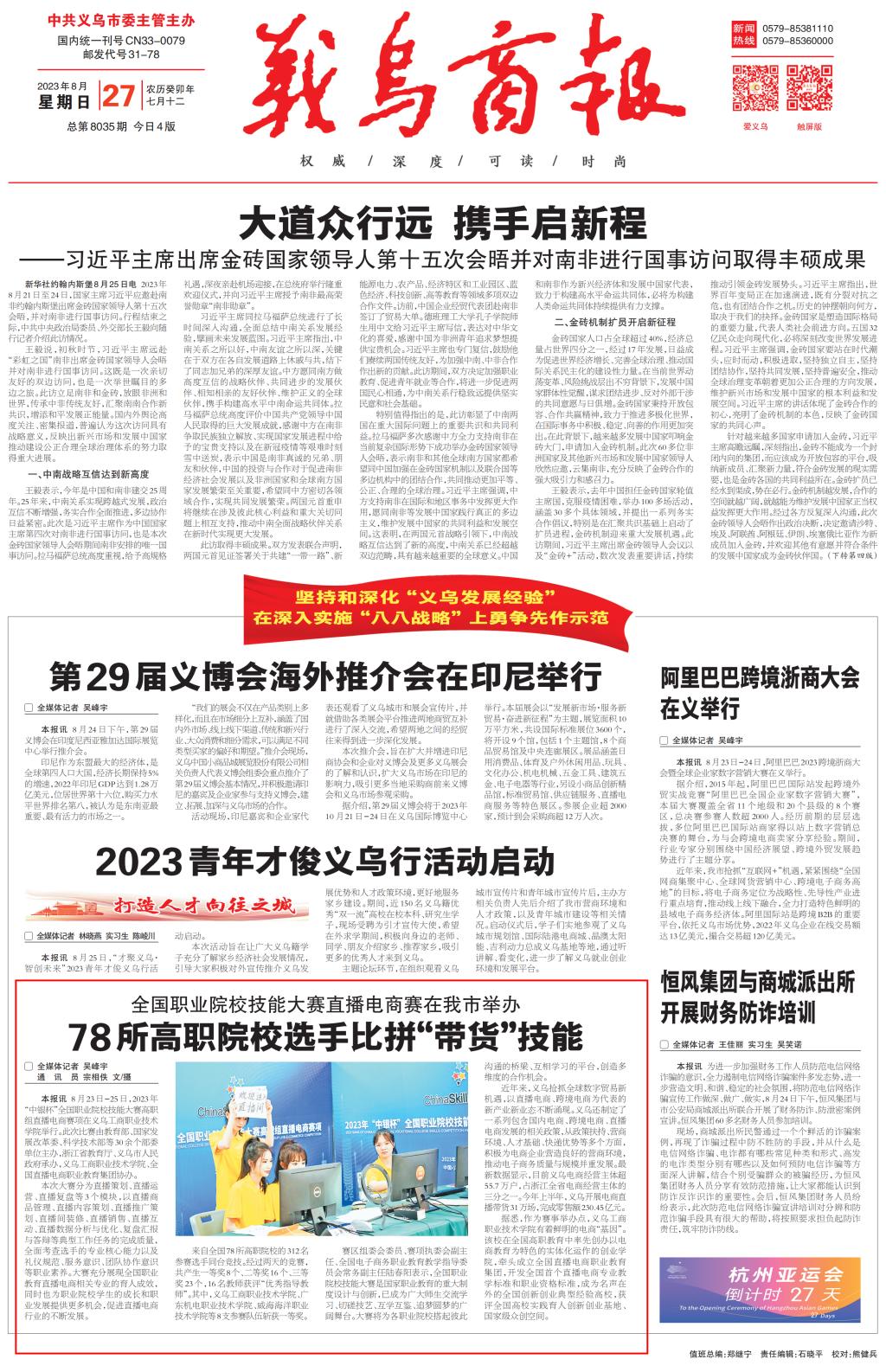 新闻链接:http://szb1.ywcity.cn/content/202308/27/content_378541.html