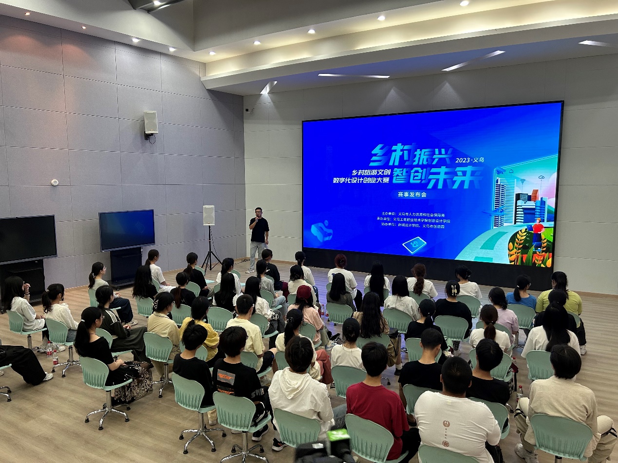 本届大赛由义乌市人力资源和社会保障局主办,义乌工商职业技术学院创意设计学院承办,商城设计学院、义乌市创意园协办,系义乌市2023 年“乡村振兴 智创未来”创业大赛的系列赛事之一。大赛主题为“数字设计,助推义乌文旅产业发展”,旨在深入挖掘义乌地区丰富的文化旅游及产业资源,通过数字化设计的技术手段呈现,宣传义乌的城市魅力,助力义乌招才引智。