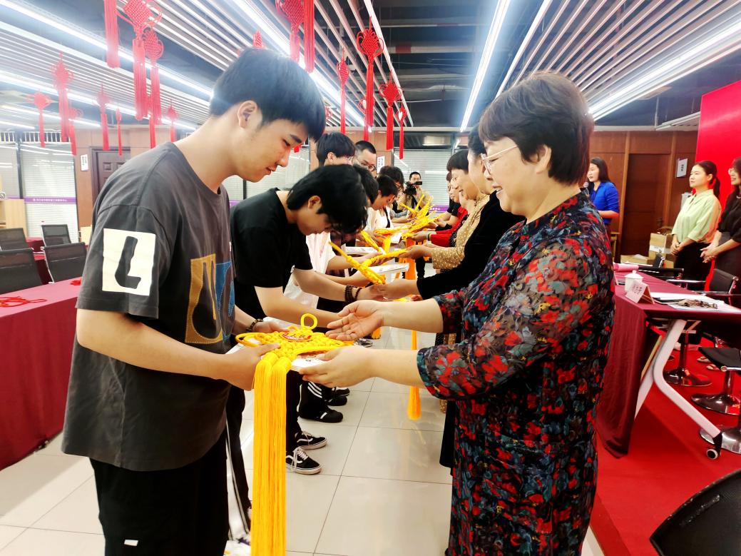 11月4日,义乌首届“工商云创客”共富教练培训班在浙江省巾帼共富工坊服务中心举行开班仪式。9名义乌市“巾帼帮帮团”匠人与13名学员结为师徒,他们互换中国结和直播教材,承诺互学互助,在共富路上传承使命。