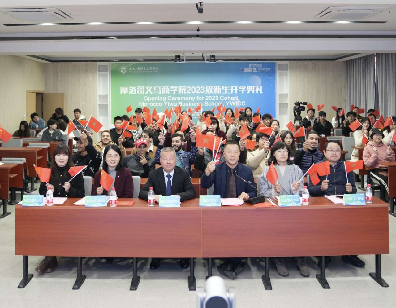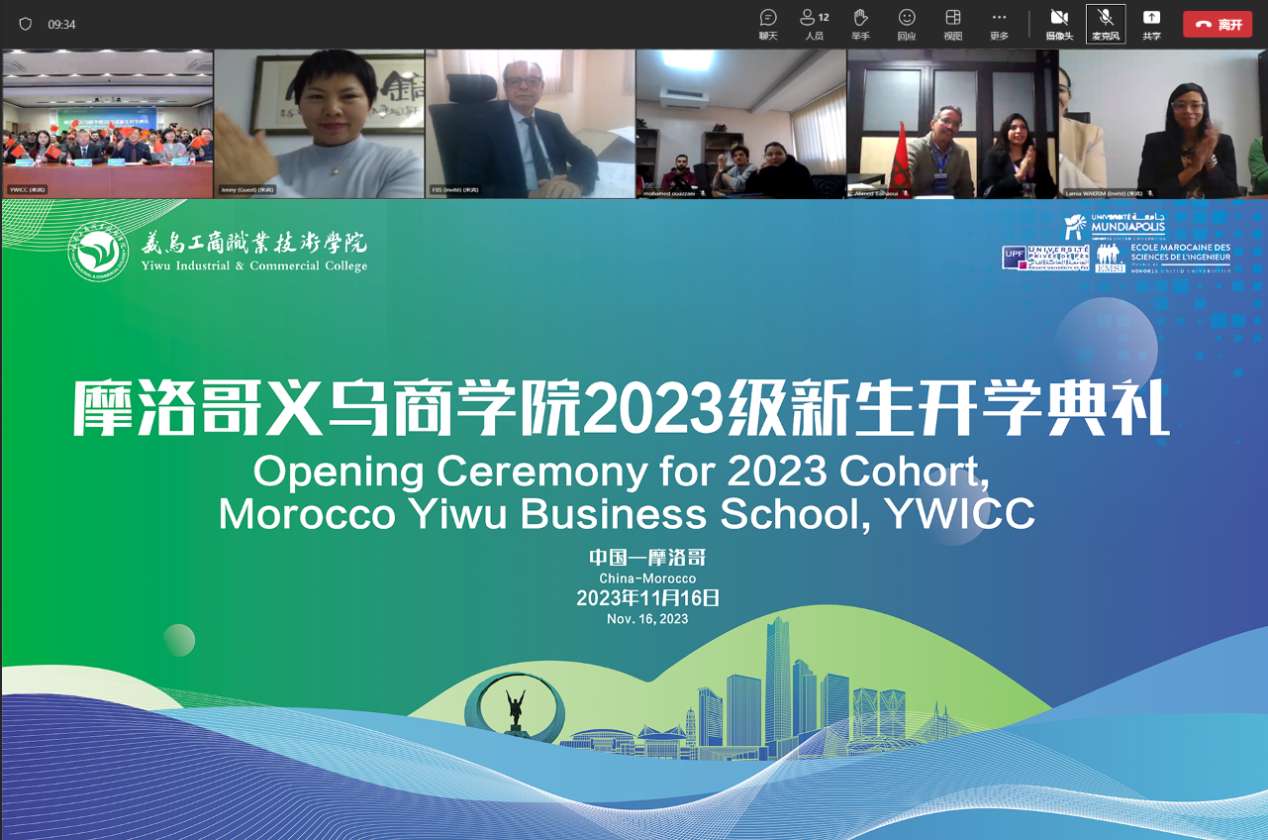 11月16日,义乌工商职业技术学院首个海外分校——摩洛哥义乌商学院2023级新生开学典礼举行。学校院长马广、摩洛哥蒙迪亚波利斯大学校长穆罕默德·巴尔卡维及摩洛哥义乌商学院2003级国际经济与贸易专业新生、中外学生代表等150余人线上线下同步参加了开学典礼。