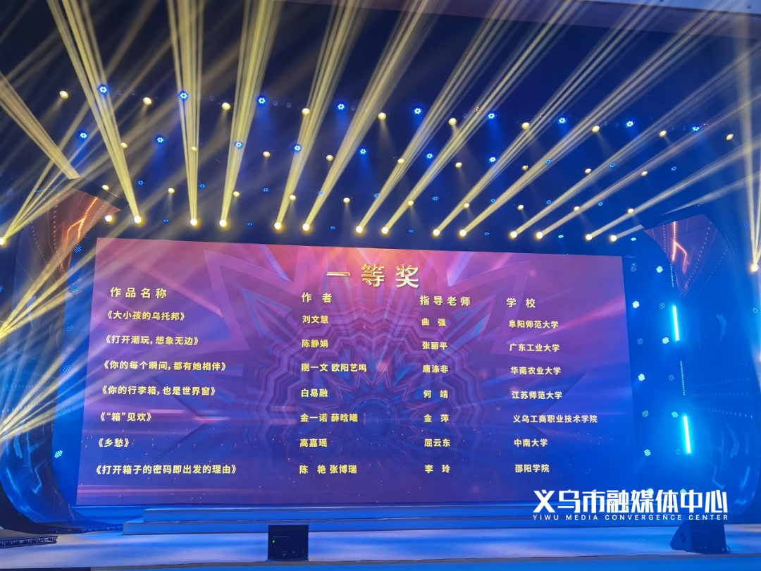 据悉,本次比赛共计一等奖获奖奖项210项,其中平面投稿作品37万5千多组作品,共计72个一等奖。经过评审,义乌工商职业技术学院创意设计学院学生金一诺,薛晗曦创作的《“箱”见欢》(指导老师:金萍)荣获平面广告类一等奖。