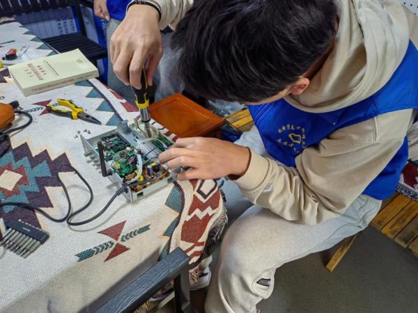 在鸡鸣山社区党群服务中心,该学院“匠行志愿队”的同学们正在开展小家电维修志愿服务活动。“一方面我们自己有机电方面的专业基础,另外能帮助居民我们也很开心”,服务队成员、入党积极分子王煜媛已经和社区工作人员十分熟悉,每次来到社区都觉得十分亲切。