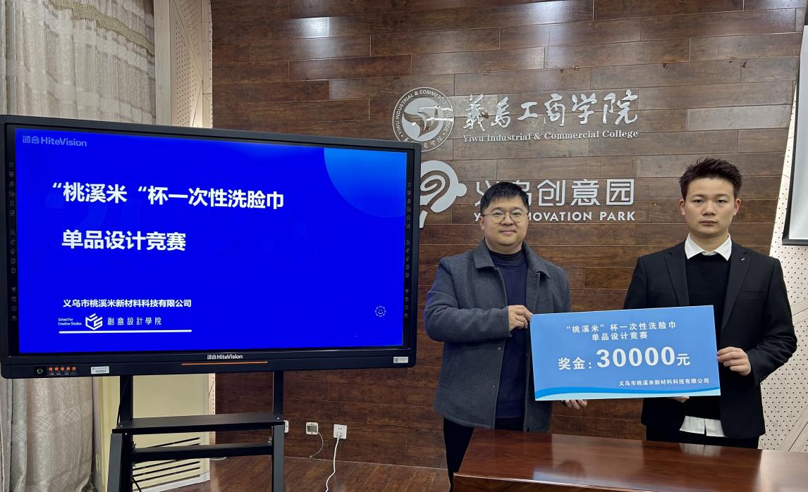 1月15日,“桃溪米”杯一次性洗脸巾单品设计竞赛正式启动!义乌工商职业技术学院创意设计学院党组织负责人出席了此次启动仪式。