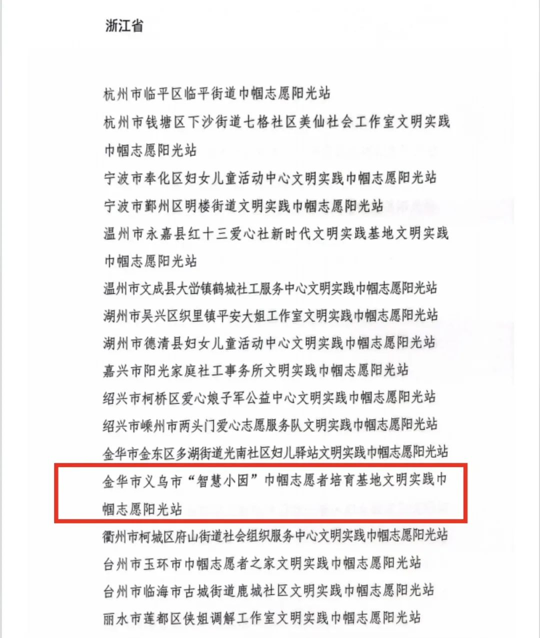 日前,全国妇联宣传部印发《关于命名新一批全国文明实践巾帼志愿阳光站的通知》,其中义乌市“智慧小囡”巾帼志愿者培育基地被全国妇联命名为全国文明实践巾帼志愿阳光站,这也是义乌市唯一一家全国文明实践巾帼阳光站。
