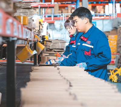 在中国(黑龙江)自由贸易试验区黑河片区,黑河跨境电商园区智能仓储物流中心的工人把打包好的货物通过传送带送到快递分拣场。 新华社记者 谢剑飞摄