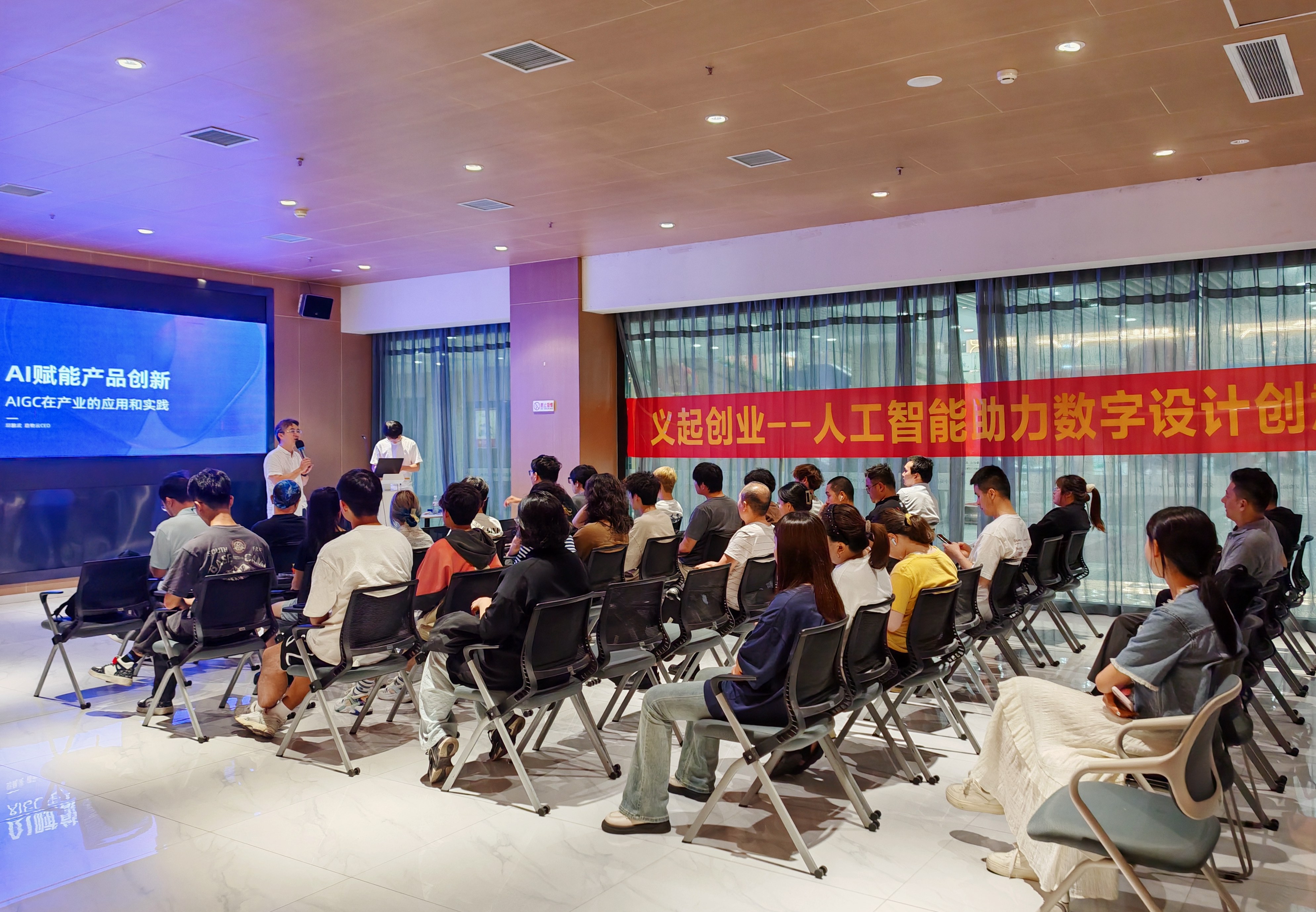 活动上,来自浙江理工大学、人工智能科技创新前沿行业等的专家学者、企业导师通过现场演讲等方式,就数据驱动设计创新、AIGC赋能文旅产业等内容进行了主题分享。同时,围绕人工智能技术的最新发展、数字设计创新概念及成功案例等话题,嘉宾们还与现场观众进行了探讨与交流。