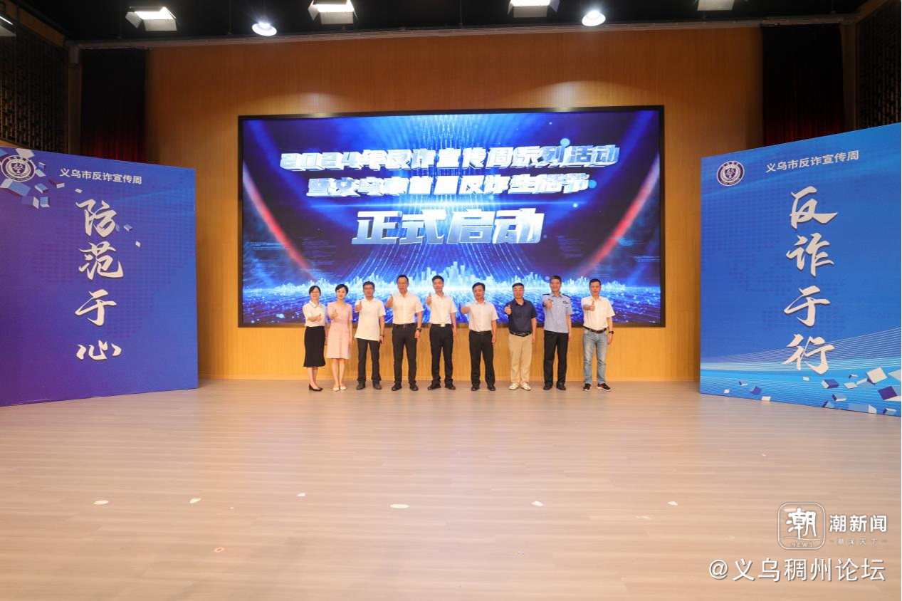 最后,在义乌市副市长、公安局长、市反诈联席会议总召集人宋寅寨的带领下,各与会领导共同启动了义乌市首届反诈生活节。