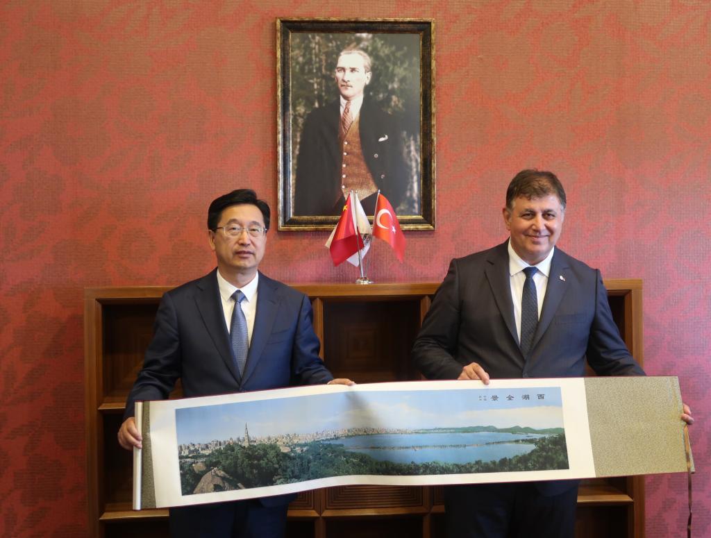 中国与土耳其是共建“一带一路”的重要合作伙伴。浙江省与土耳其伊兹密尔省是省级友城,还有四对市级友城。代表团分别会见了伊兹密尔省常务副省长胡鲁西·多根、伊兹密尔市市长塞米尔·图盖;陈金彪介绍了我省经济发展和对外开放情况,希望进一步深化浙江与伊兹密尔省友城关系,推动两地在人大议会和经贸、文化、旅游等领域交流合作。代表团拜访了伊斯坦布尔市议会,与第一副议长努里·阿斯兰等座谈交流;陈金彪介绍了我国人民代表大会制度,分享了浙江全过程人民民主的探索实践,希望密切两地人大和议会的互动交流,带动两地人民发展友谊、增进互信,推动务实合作不断深化拓展。在土期间,代表团调研了土耳其航空总部,会见土耳其航空首席执行官比拉尔·埃克西,商讨推动土耳其航空开设直航浙江航线,加强两地人员往来;我驻伊斯坦布尔总领事魏晓东参加相关活动。