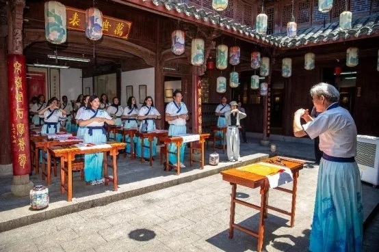 此次“穿汉服 学汉礼 写汉字”一带一路友好国家(摩洛哥)青年走进双龙景区活动中,由18位摩洛哥青年学子组成的研学团,穿汉服、学汉礼、写汉字,欣赏了国粹“变脸”表演,品尝了由金华佛手制成的“牧羊客”金佛手饮。对于酷爱中国文化的他们来说,这样的沉浸式研学新鲜而有趣,独具美好的仪式感和体验感。