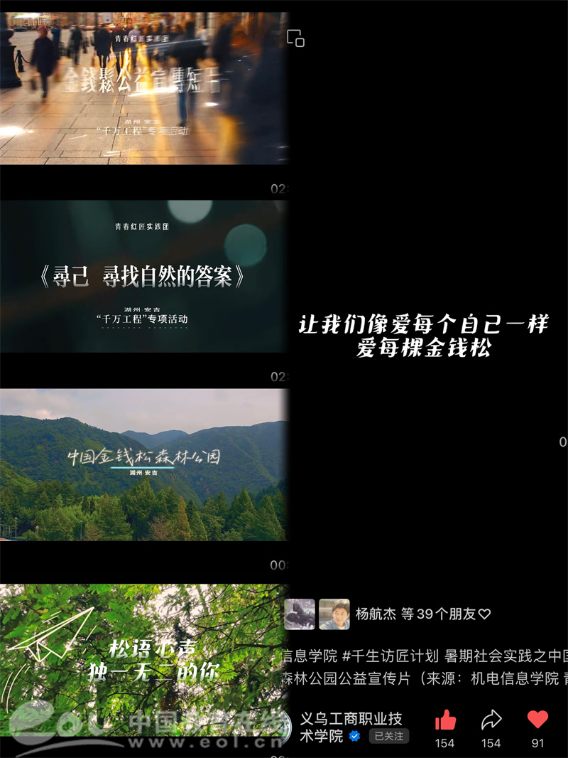 最终,《松语心声》公益宣传片以其独特的视角、深刻的内涵和精美的画面赢得了广泛赞誉。它不仅在社交媒体上引发了热烈反响,更激发了人们对生态保护与绿色发展的关注与思考。青春红匠实践团用镜头和行动,向大家展示了安吉的美丽与魅力,也传递了人与自然和谐共生的美好愿景。在未来的日子里,他们将为守护绿水青山贡献自己的青春力量。