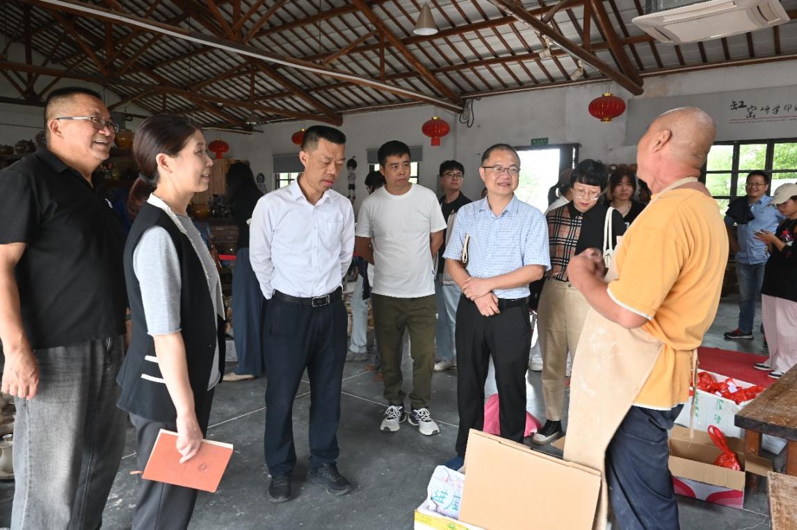 缸窑古韵,陶艺传情。建筑工程学院师生代表一行在义亭镇缸窑村党总支书记陈跃俊等人带领下参观了缸窑村,深切感受到义乌农村在党建统领下村庄的发展巨变。在缸窑古陶陈列馆,大家了解了缸窑古陶的发展历程和村庄的历史文化;在陶艺体验中心,陶缸制作技艺非遗传承人贾仕根师傅真诚地邀请学生们一起学习陶艺,他笑着说道:“只要来了,用心学,不收学费。”贾师傅对非遗技艺的坚守和传承令师生们动容;在乡村共富体验馆,师生们见到了富含地方特色的米浆咖啡和麻糖蜜枣,这些地道又不乏新意的美食让大家深刻感受到了乡村发展的新活力。