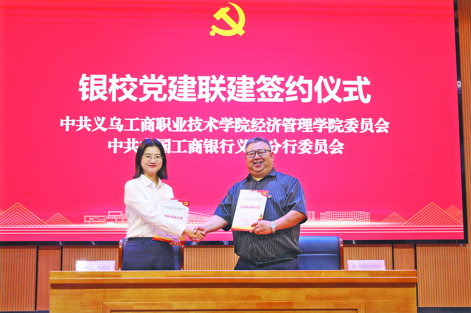 近日,工商银行义乌分行与义乌工商职业技术学院经济管理学院举行了党建联建签约仪式,并对网点管理人员举行了综合能力提升专题培训。
