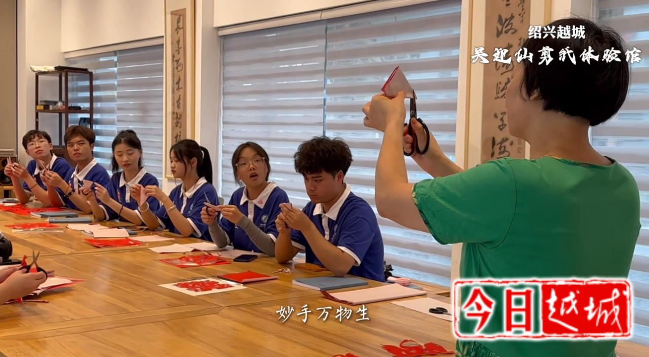 在创作《越韵风华》过程中,实践团的成员们不仅深入了解了绍兴的非遗文化,还亲身体验了其中的一些技艺。大家跟着非遗剪纸的传承人吴迎仙大师,体验了一把剪纸。吴老师耐心地教大家如何剪出一枚精致的铜钱,并分享了铜钱“外圆内方”设计背后的智慧。通过亲身体验,实践团的成员们深刻感受到了每一项技艺背后都蕴含着匠人们的心血和智慧,对传统文化和匠人们的工匠精神充满了敬意。