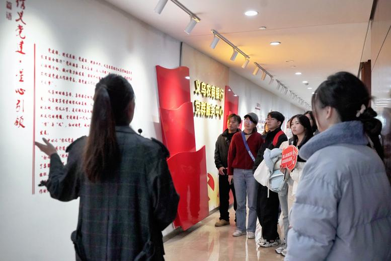 毅行队伍从学校出发,沿义乌江徒步4.2公里,抵达党建联建单位义乌农商银行总行廉政教育基地。途中,经济管理学院老师结合宾王大桥、江滨绿廊公园(双拥主题教育公园)等地标,生动讲述义乌发展历史。通过行走的力量,师生校友共同践行清廉文化,提升思想政治修养。