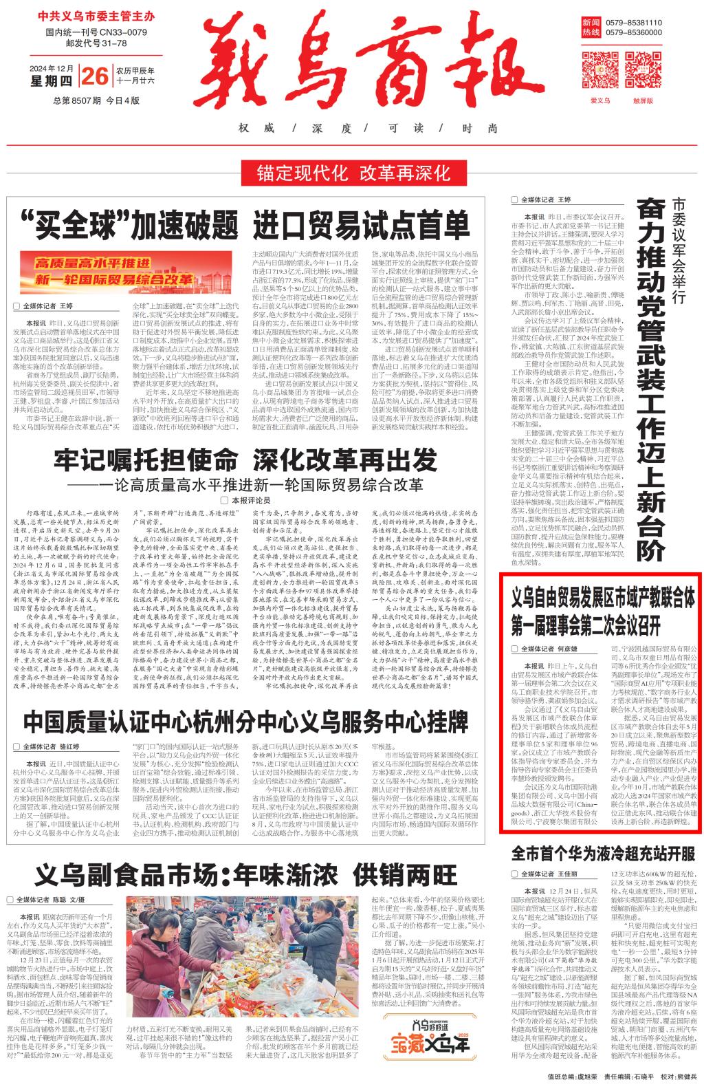 据悉,义乌自由贸易发展区市域产教联合体自去年5月20日成立以来,聚焦新型数字贸易、跨境电商、直播电商、国际物流、现代金融等新质生产力产业,在自贸区综保区内办学,在产业园物流园里办学,推动专业融入产业、产业促进专业。今年10月,市域产教联合体成功入选2024年国家市域产教联合体名单,联合体各成员单位正借此东风,推动联合体建设再上新台阶、再造新辉煌。