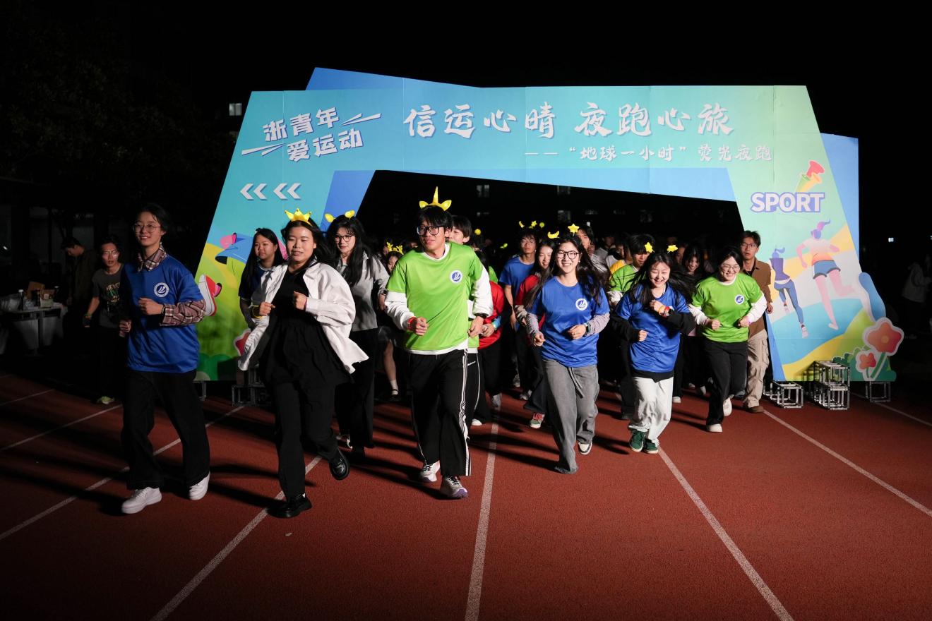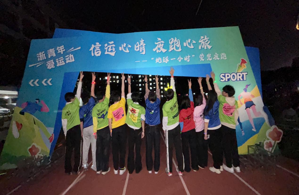 音乐节的余韵尚未消散,“浙青年 爱运动”荧光夜跑活动在操场以炫彩的姿态盛大开跑。作为本次系列活动的压轴环节,荧光夜跑紧紧围绕“地球一小时”主题,旨在大力倡导环保理念,积极传递爱心力量。