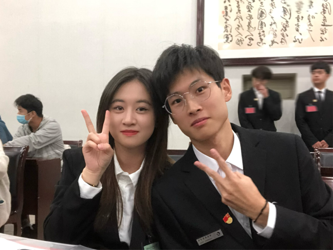 也是在这一年,两个人都在班主任柯红红的推荐下,进入院团委学生会当干部。“其实最开始的时候还是有点抗拒的,会觉得学生会工作很忙,当真正接触之后,我收获的不仅仅是工作经历,还有一群好朋友以及一份责任心。”采访中聊起学生会的经历,张景龙望向巫佳琪,眼里闪着光。这份责任心不断鼓舞着他们向前走,在学生会当干部为大学生活增添了色彩,受用终身。