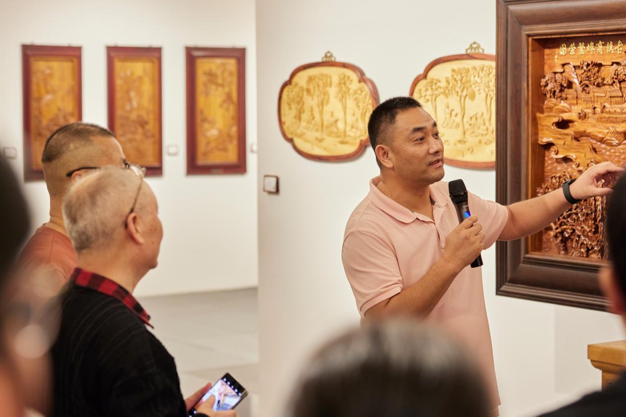 9月26日,国家艺术基金2025年度传播交流推广资助项目“无墨之墨:当代浙江木雕艺术作品巡展”在安徽省美术馆10号馆开幕。