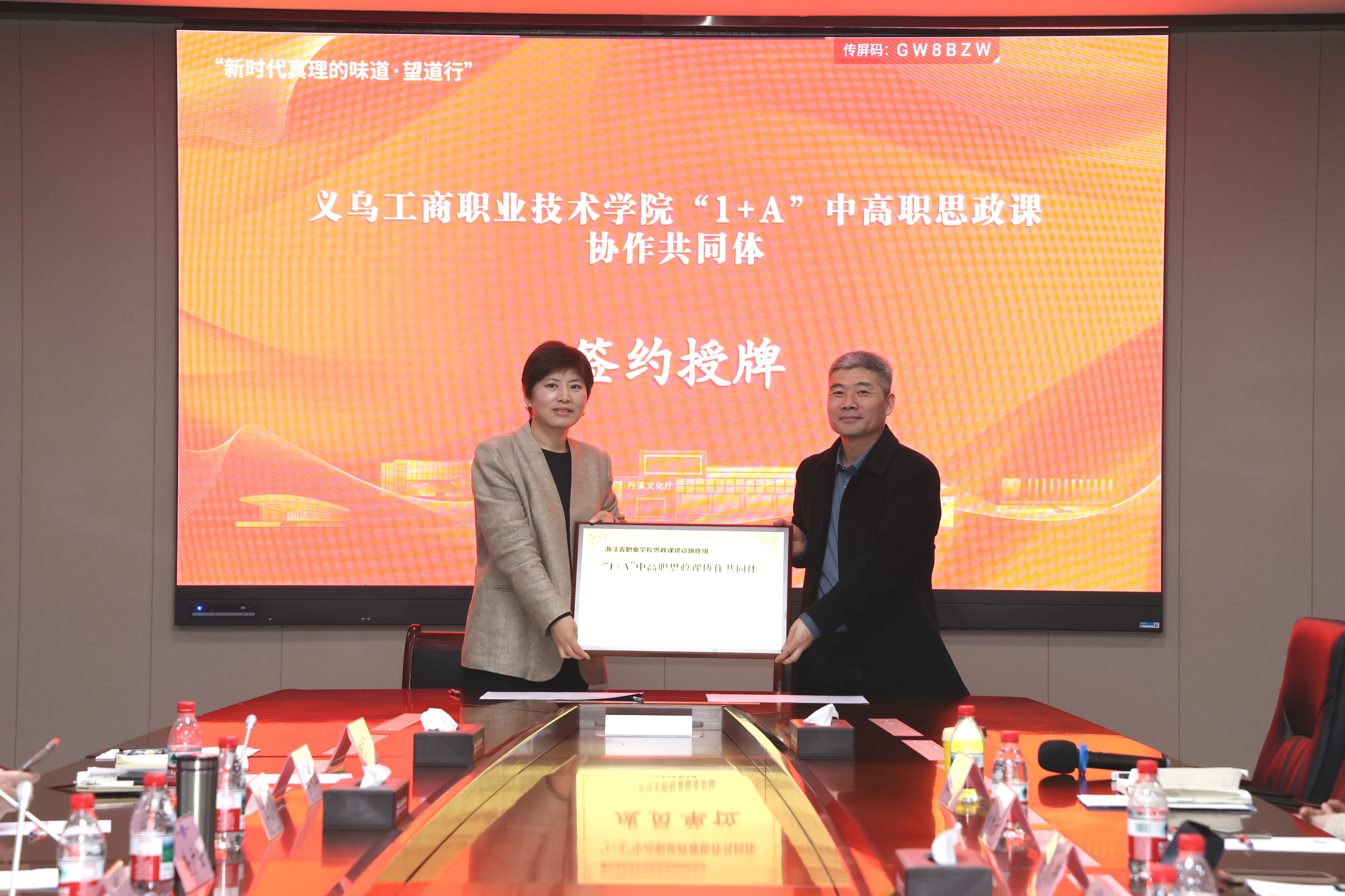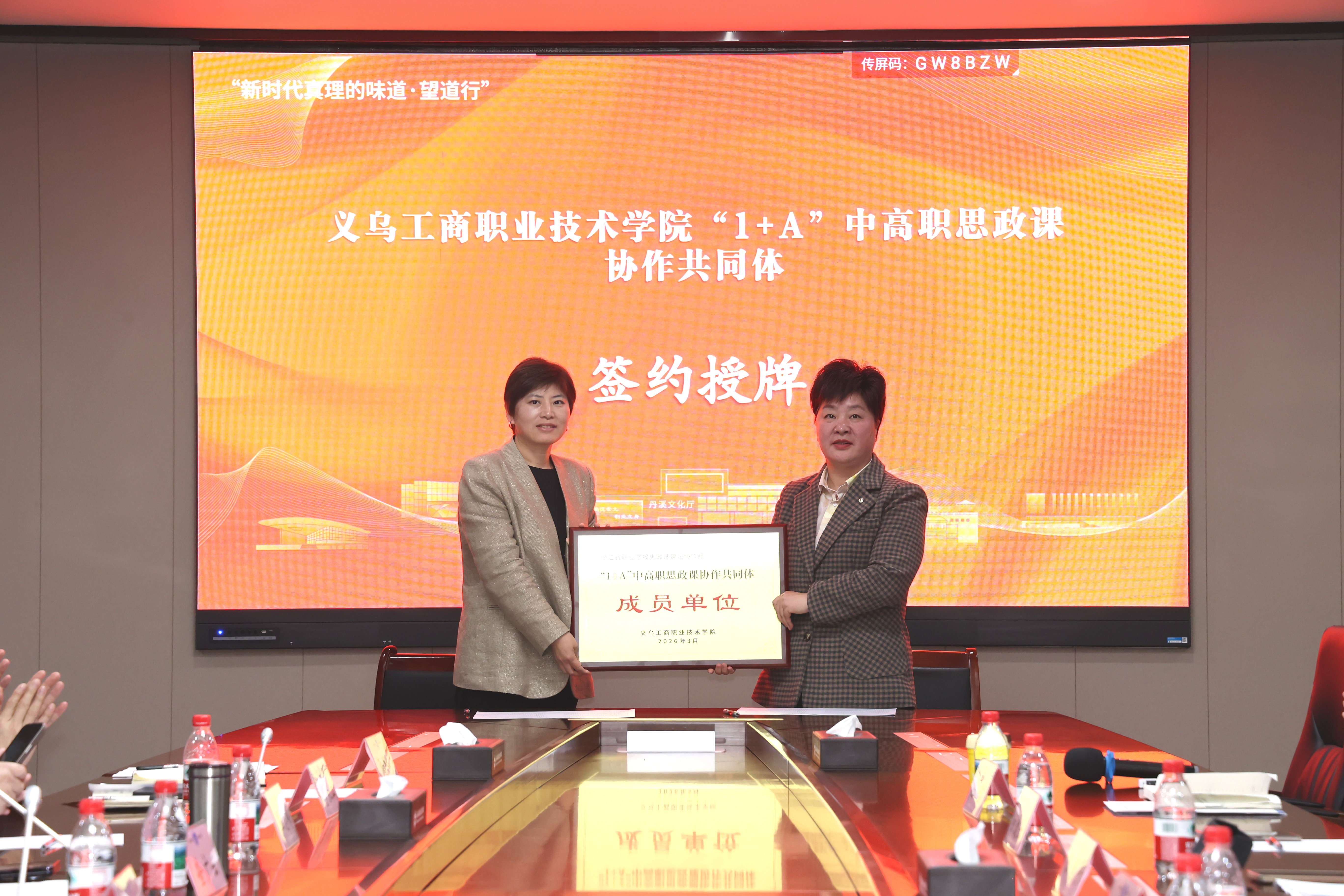 仪式上,三校代表共同签署协作协议,并进行“1+A”中高职思政课协作共同体授牌仪式,携手开启中高职思政协同育人新征程。这标志着以义乌工商职业技术学院为“1”,以多所优质中职学校为“A”的紧密型协作模式正式落地运行,为进一步打响“新时代真理的味道”提供重要依托。