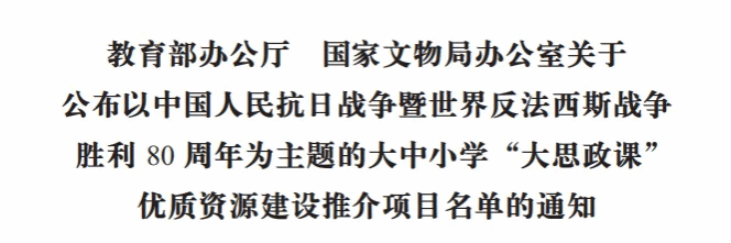 近日,教育部、国家文物局公布以中国人民抗日战争暨世界反法西斯战争胜利80周年为主题的大中小学“大思政课”优质资源建设推介项目名单。其中,全省共有8个项目成功入选,金华入选2个。